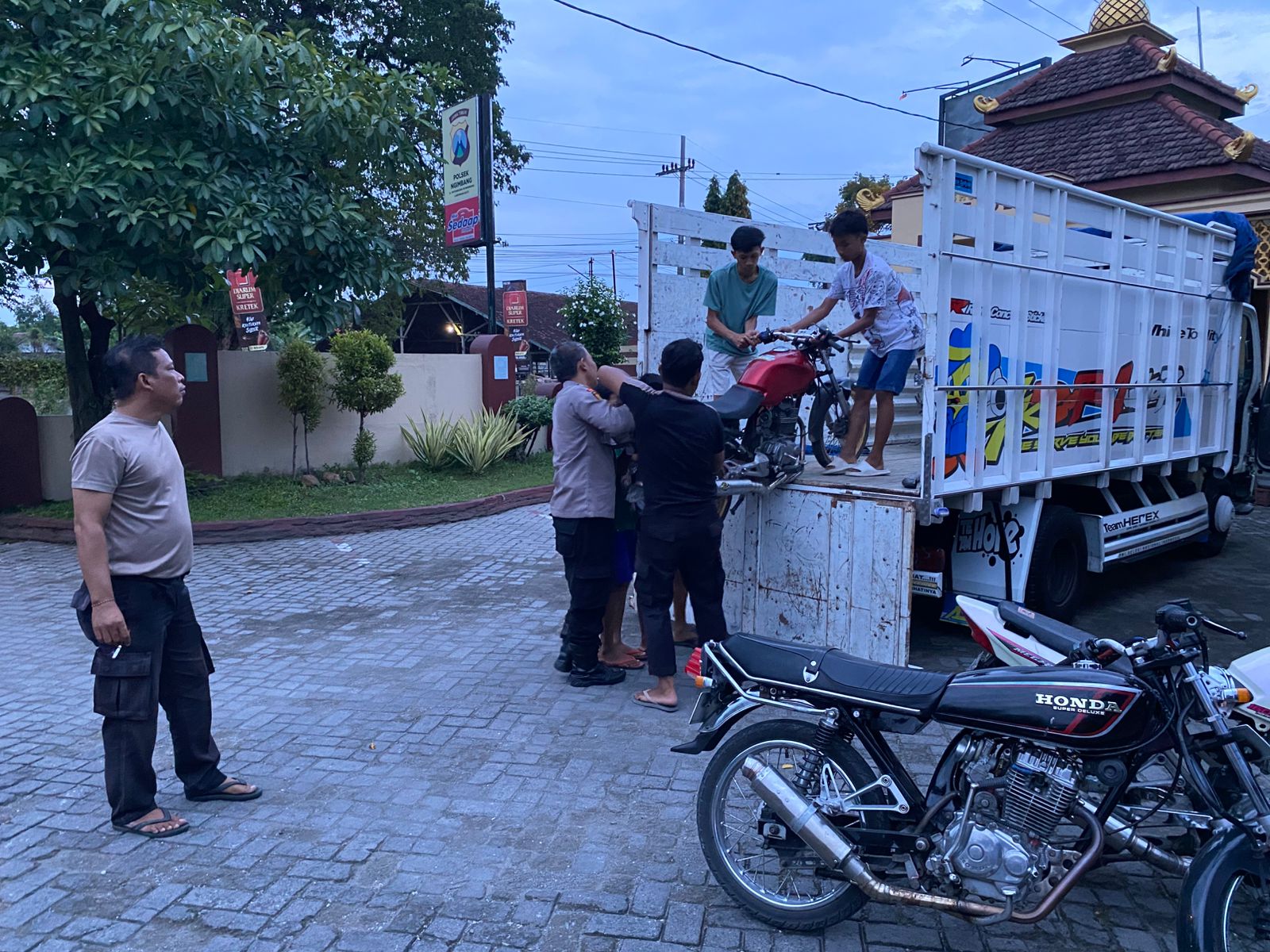 Anggota Polsek Ngimbang mengamankan kendaraan roda dua berknalpot brong. Foto: dok