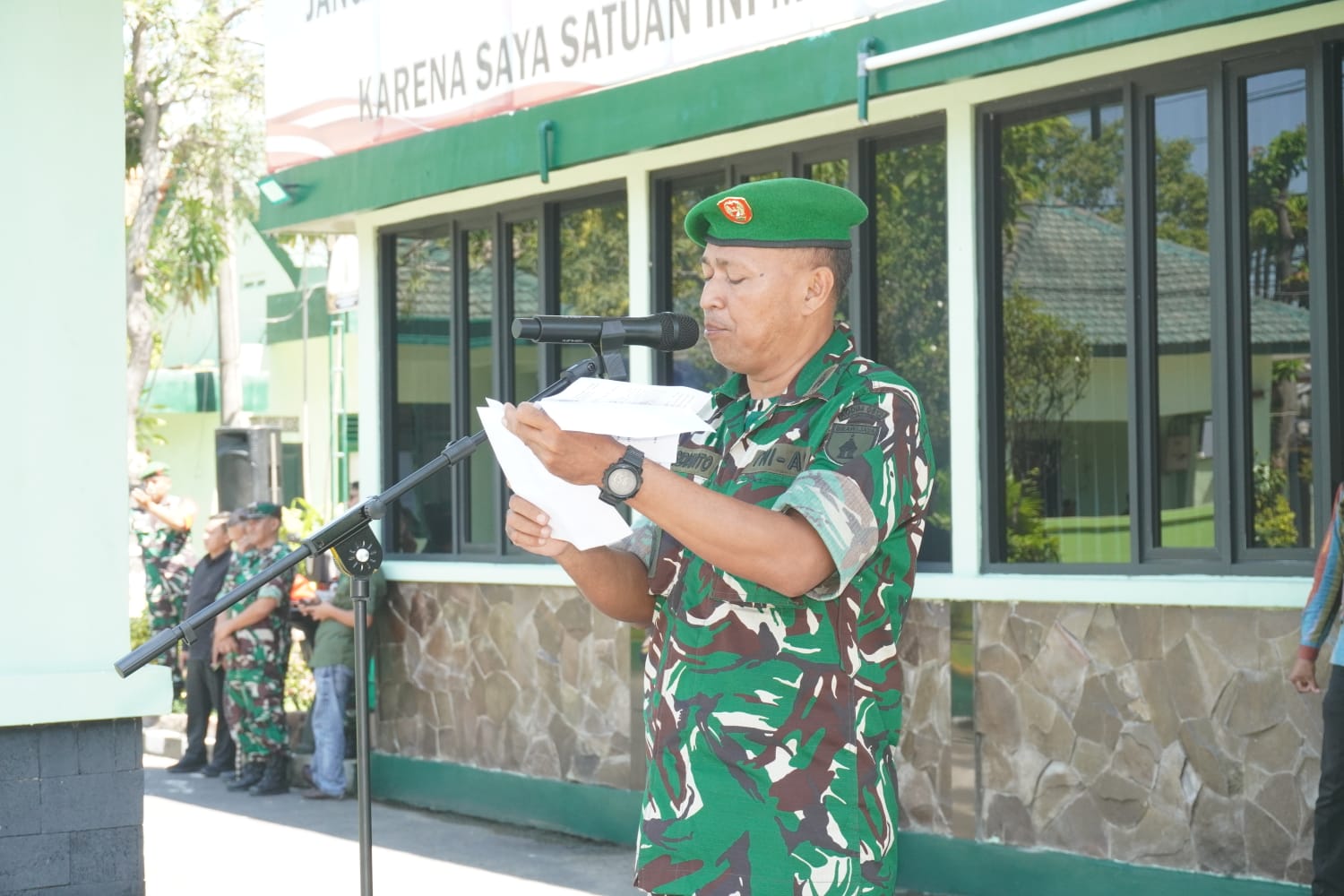 Kepala staf kodim 0812 Lamongan Mayor CPM Marsidianto mewakili komandan kodim dalam sambutan sebelum serah teroma kendaraan roda tiga