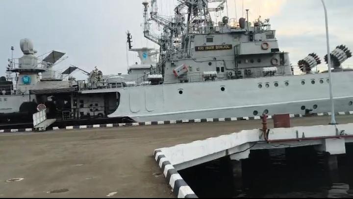 Foto kapal KRI Imam Bonjol sedang merapat di Dermaga di sela-sela tugas pengamanan Wilayah Laut Indonesia.